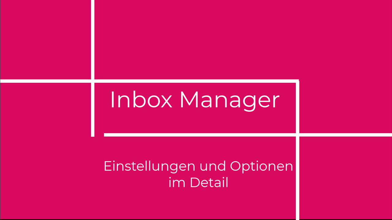Ergänzend zum Einführungsvideo werden hier alle Einstellungen und Optionen ausführlich erläutert, damit Sie den Inbox-Manager noch gezielter auf Ihre Anforderungen konfigurieren können.